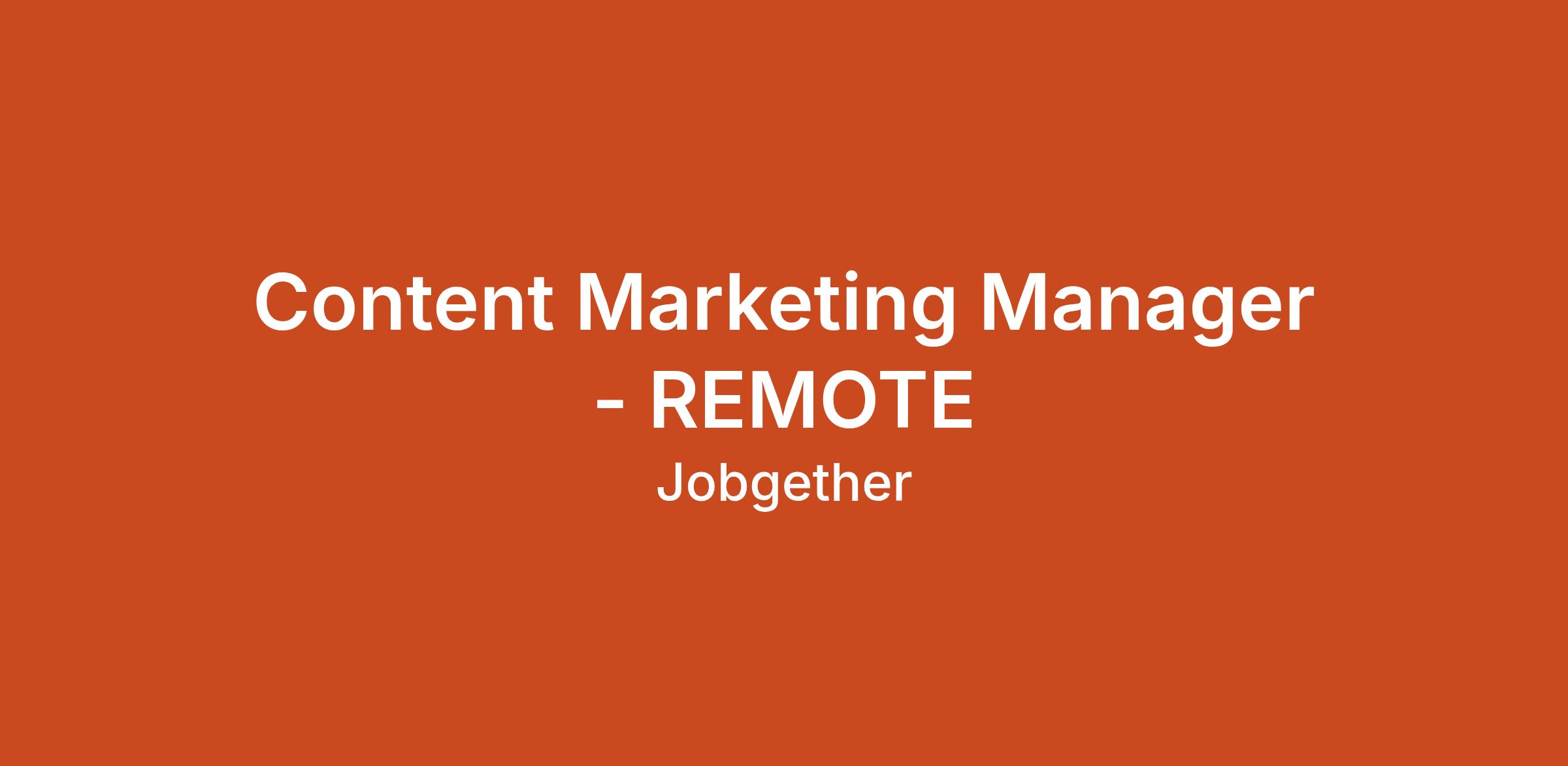 Content Marketing Manager - REMOTE
