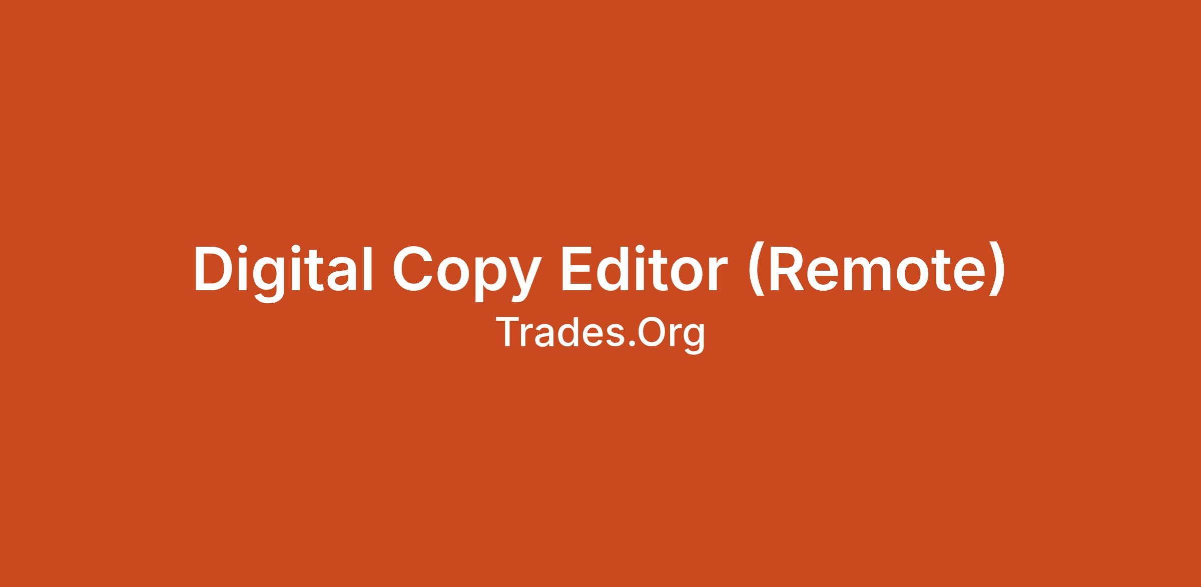 Trades.org is hiring people who want to be paid to edit written work! We’re building a team to quickly launch a new website, and content creators need an Online Copy Editor with an eye for detail, a passion for corrections, and a desire to help writers improve.