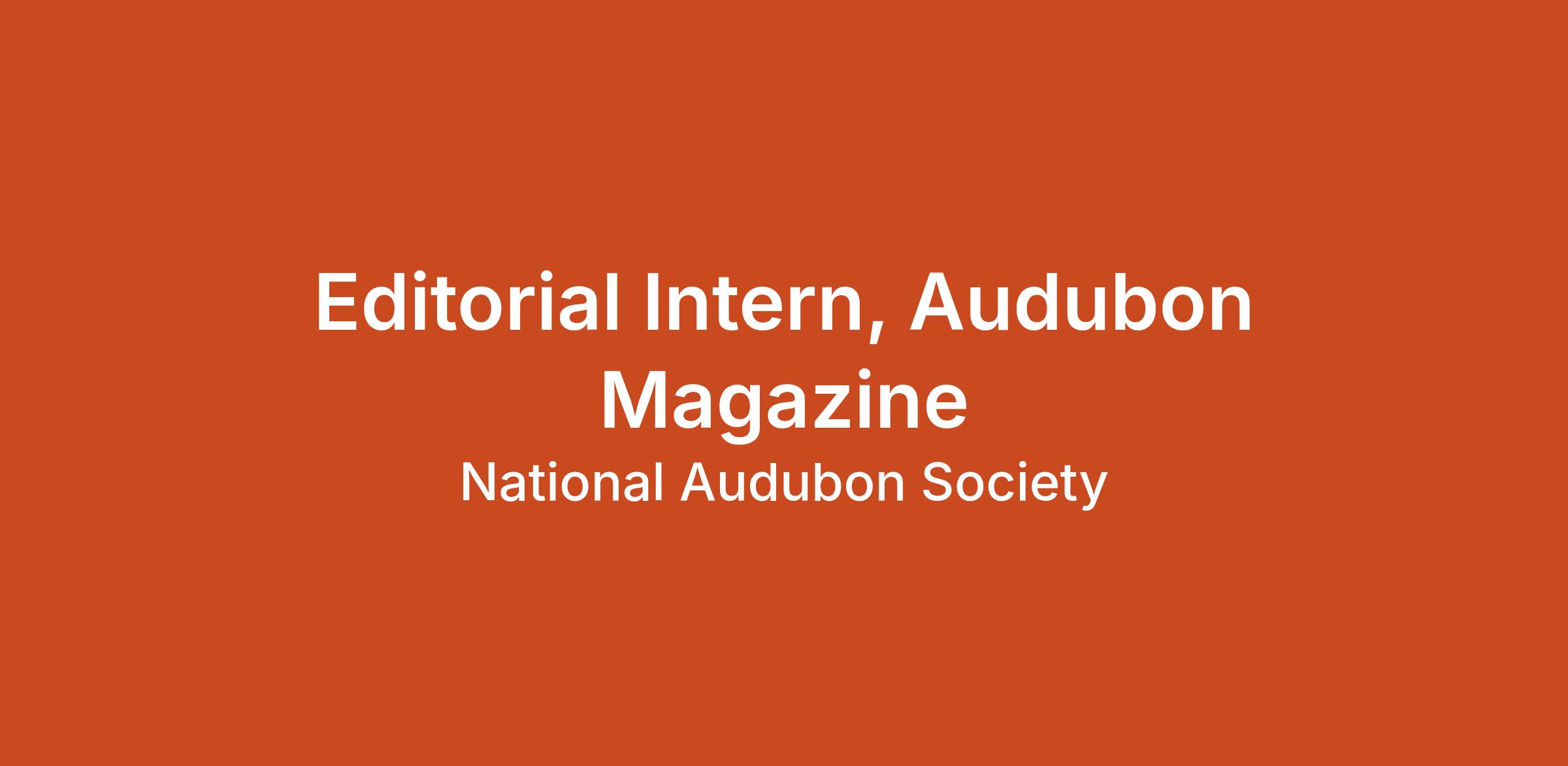 Audubon magazine, the organization’s editorially independent publication, uses explanatory and advocacy journalism, as well as stunning original photography, to inform its readers about the natural world, inspire them to care passionately about that world, and motivate them to take action on its behalf. Audubon’s editorial intern contributes meaningfully to that effort via both the print publication and website.