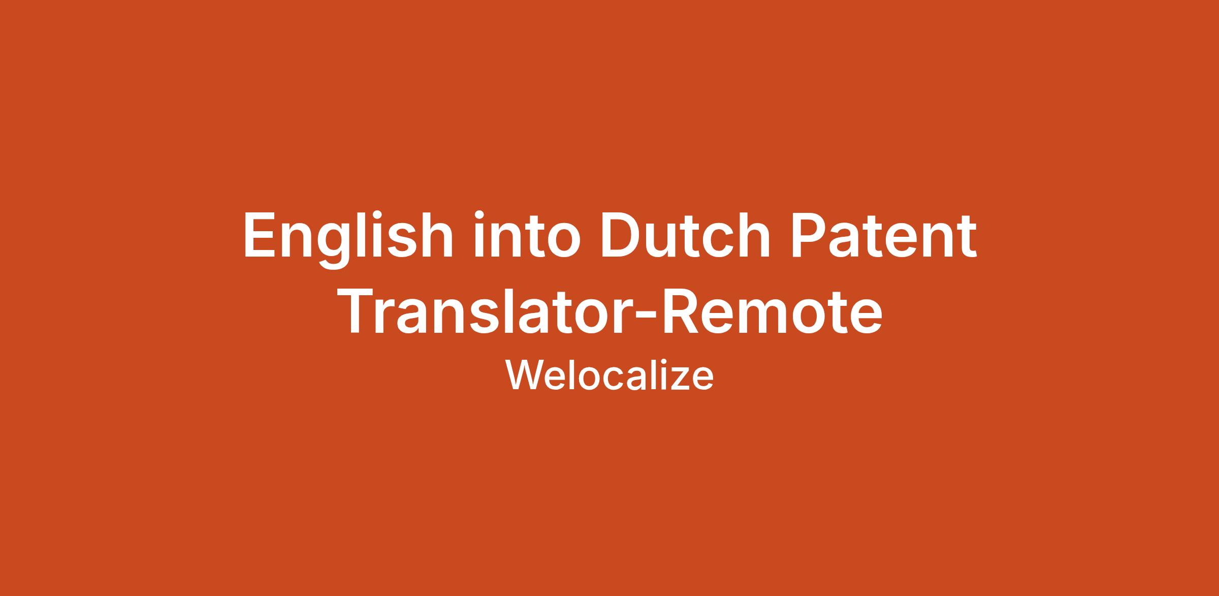 This is just one of the many interesting projects offered by Welocalize for English into Dutch patent translation.
