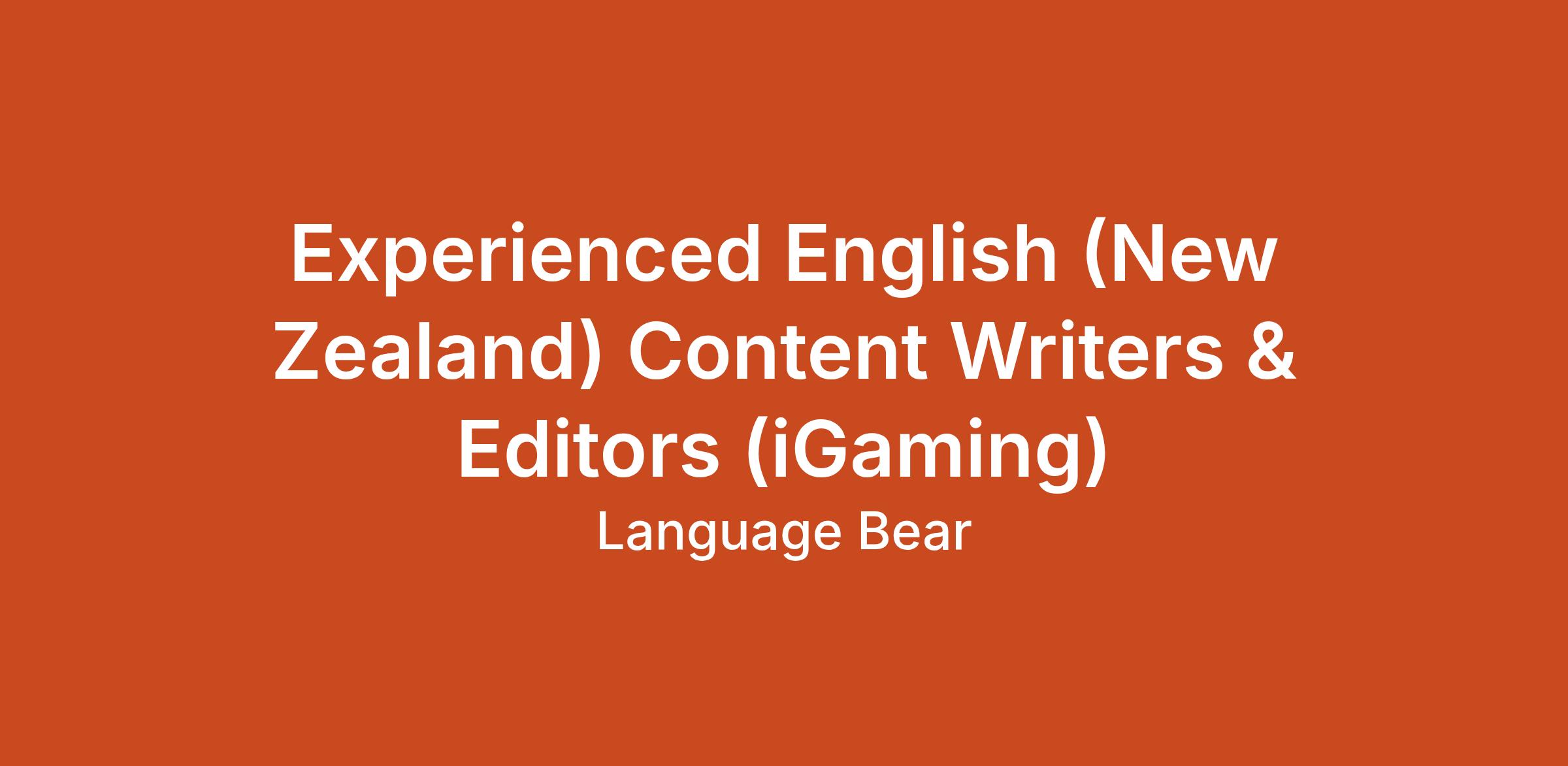 Experienced English (New Zealand) Content Writers & Editors (iGaming)