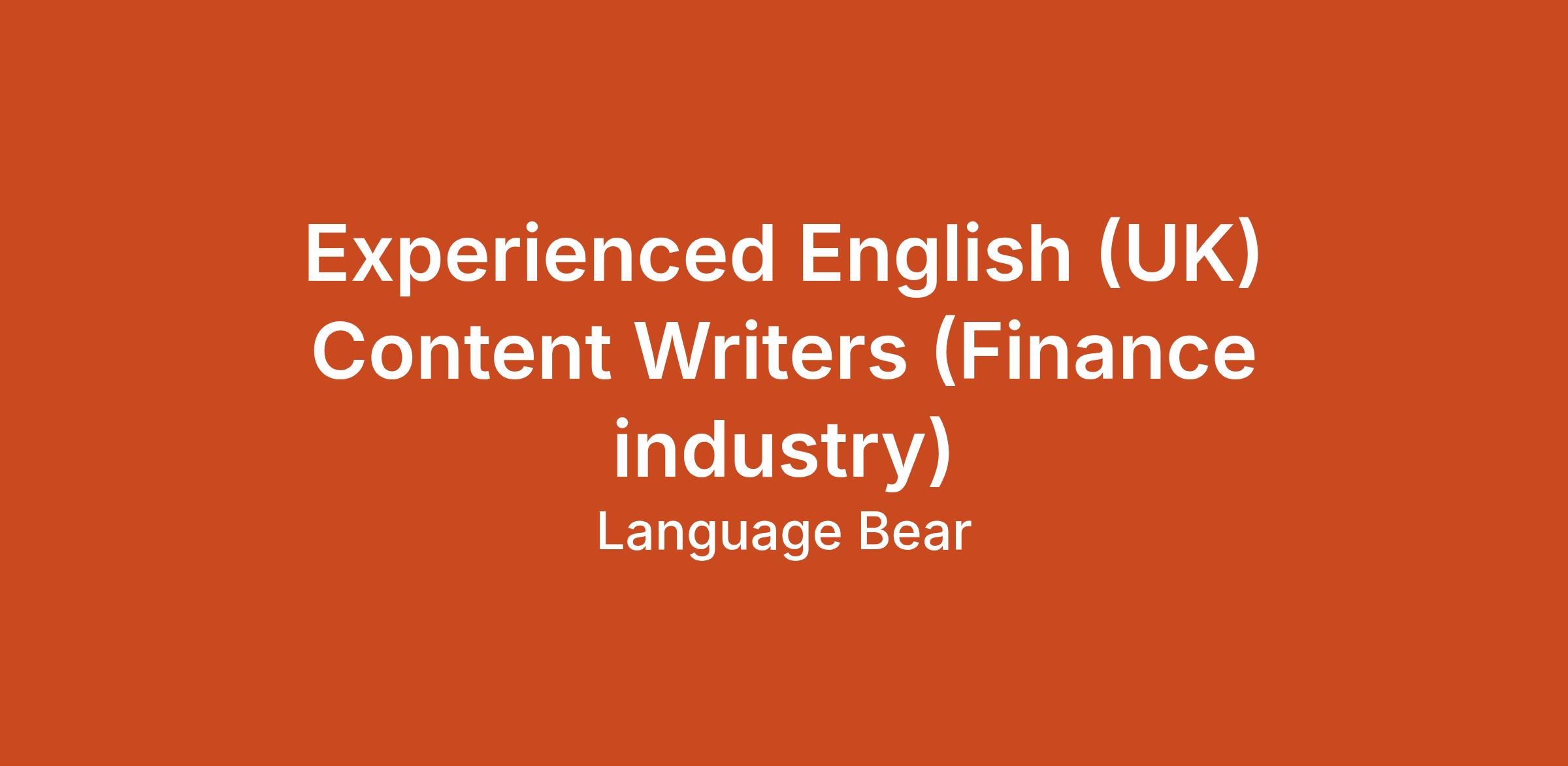 Experienced English (UK) Content Writers (Finance industry)