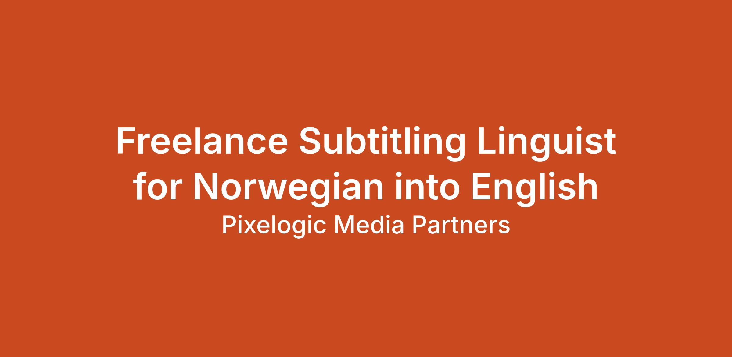 Due to increased demand for localized content, Pixelogic is looking for experienced Norwegian into English subtitling translators and QCers to establish a professional, high-performing collaboration as part of our language services department with the end goal of servicing our clients’ end-to-end projects.