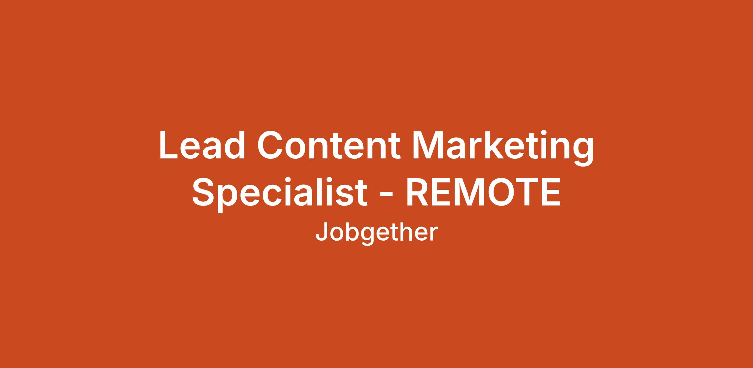 Lead Content Marketing Specialist - REMOTE