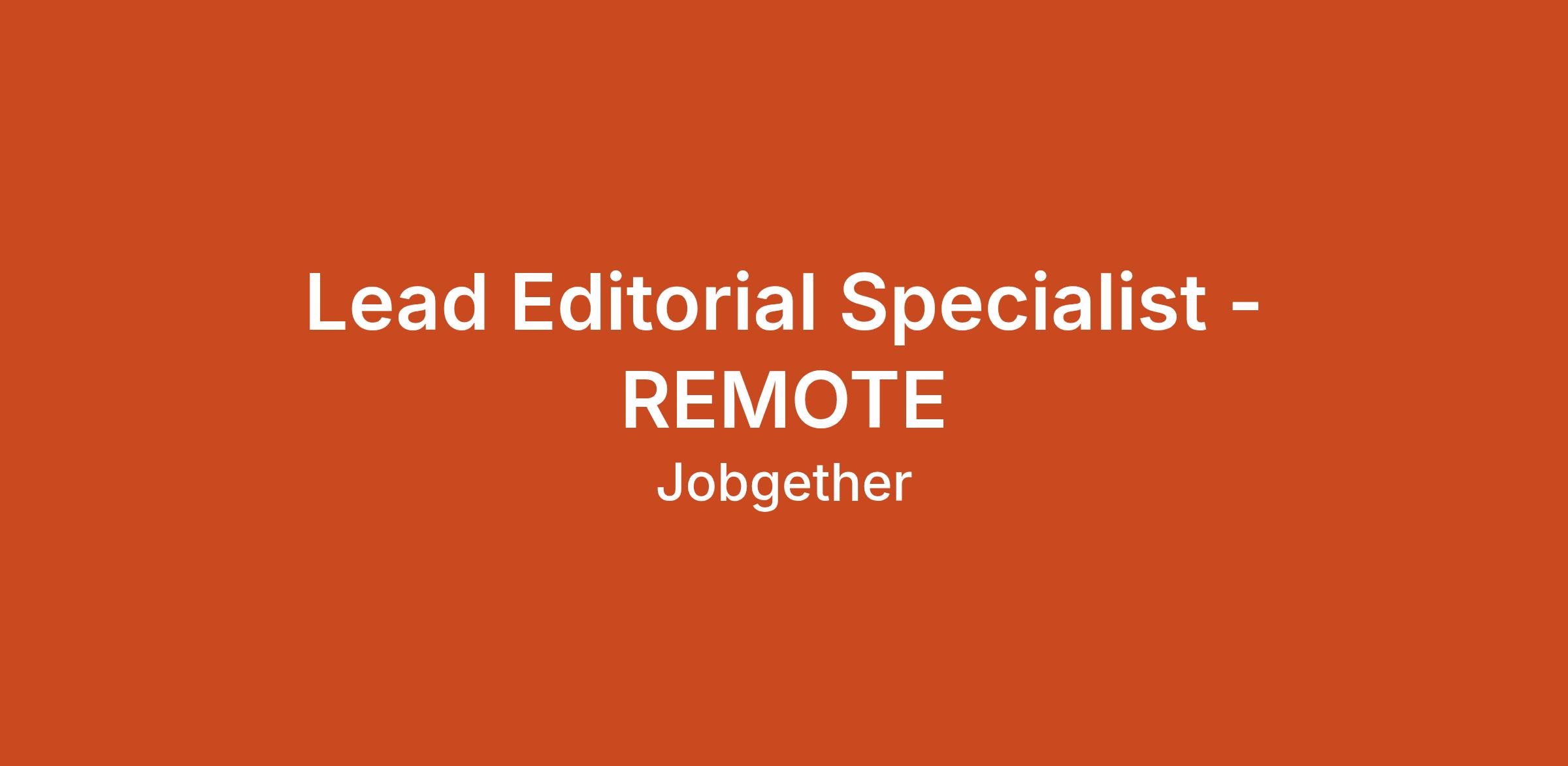 Lead Editorial Specialist - REMOTE