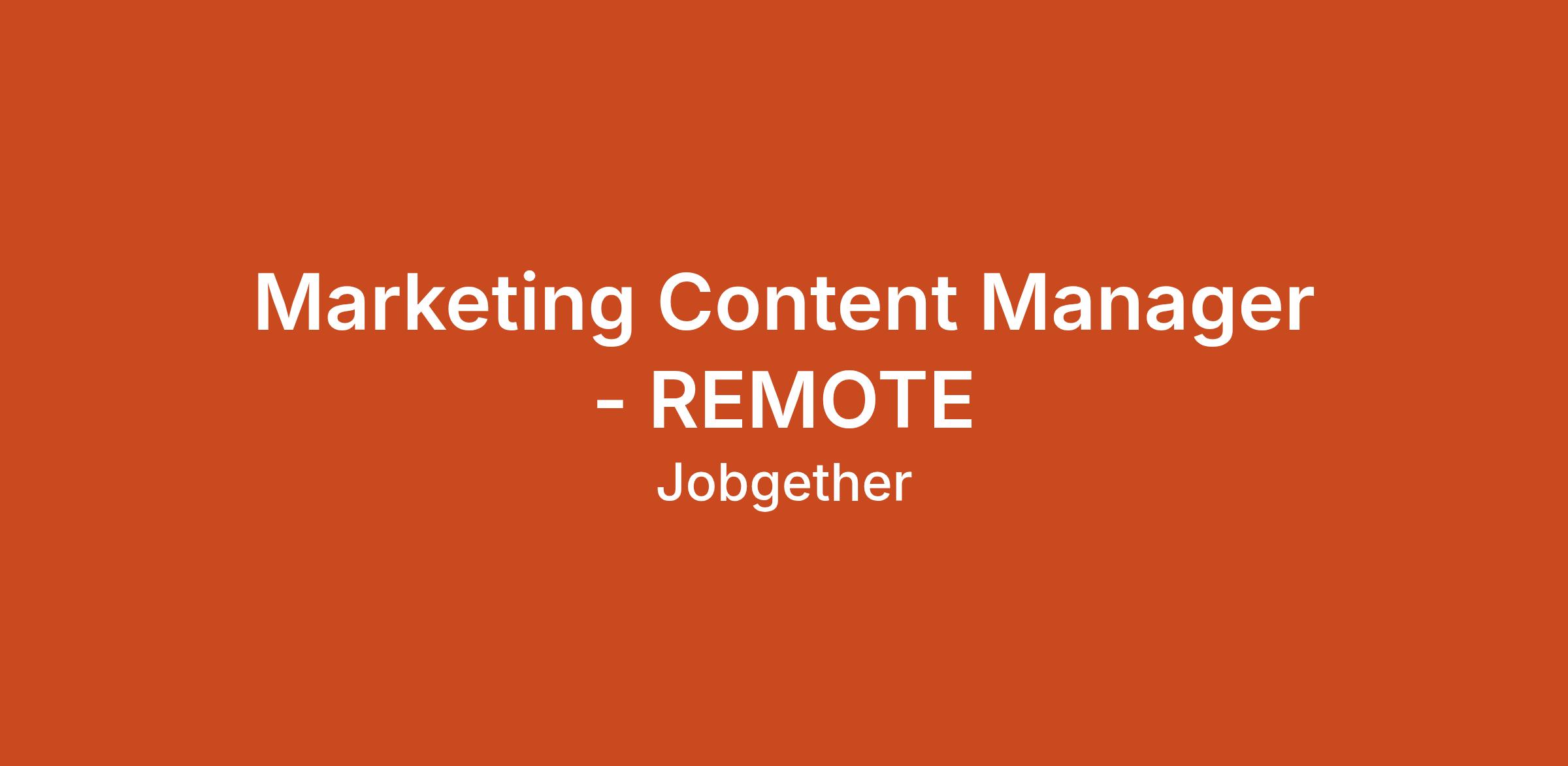 Marketing Content Manager - REMOTE