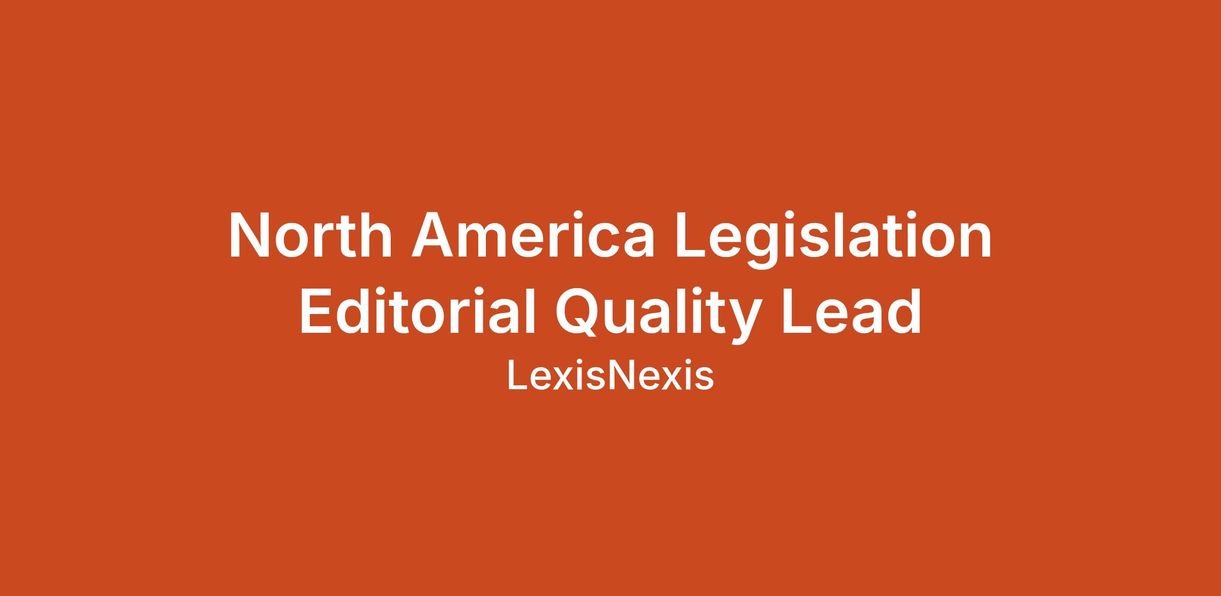The North America Legislation Editorial Quality Lead (United States and Canada) defines and delivers the regional quality strategy for statutory and regulatory content, ensuring it is accurate, consistent, AI-ready, and aligned with LexisNexis’ online-first transformation. This individual contributor role reports to the Global Head of Legislation and works closely with Editorial Managers, Product, Technology, and global stakeholders to drive measurable improvements in customer experience and support the ongoing development of AI-optimized, quality-focused workflows.