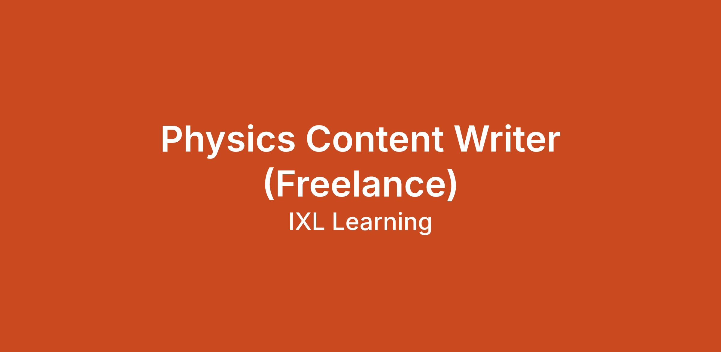 IXL Learning, developer of personalized learning products used by millions of students and teachers globally, is seeking creative, motivated physics curriculum writers to join our science content development team. In this role, you will work closely with editors and curriculum designers to create engaging instructional content for high school physics.