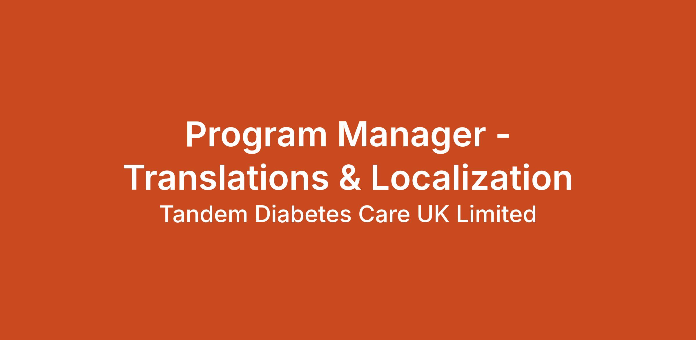 The Program Manager, Translations & Localization is responsible for leading global translation and localization programs supporting Tandem Diabetes’ product development, regulatory submissions, commercialization, and post‑market sustaining activities. This role manages complex, multi‑language initiatives across product labeling, software/UI, packaging, training, marketing, and digital content, ensuring accurate, timely, and compliant delivery for global markets. The Program Manager acts as a key cross‑functional facilitator, partnering with Global Labeling, Regulatory Affairs, Quality, R&D, Clinical, Marketing, Digital, Manufacturing, and external language service providers (LSPs). This position requires strong program management expertise, deep understanding of medical device quality systems, and the ability to manage multiple concurrent workstreams in a regulated environment.WHAT YOU’LL DO