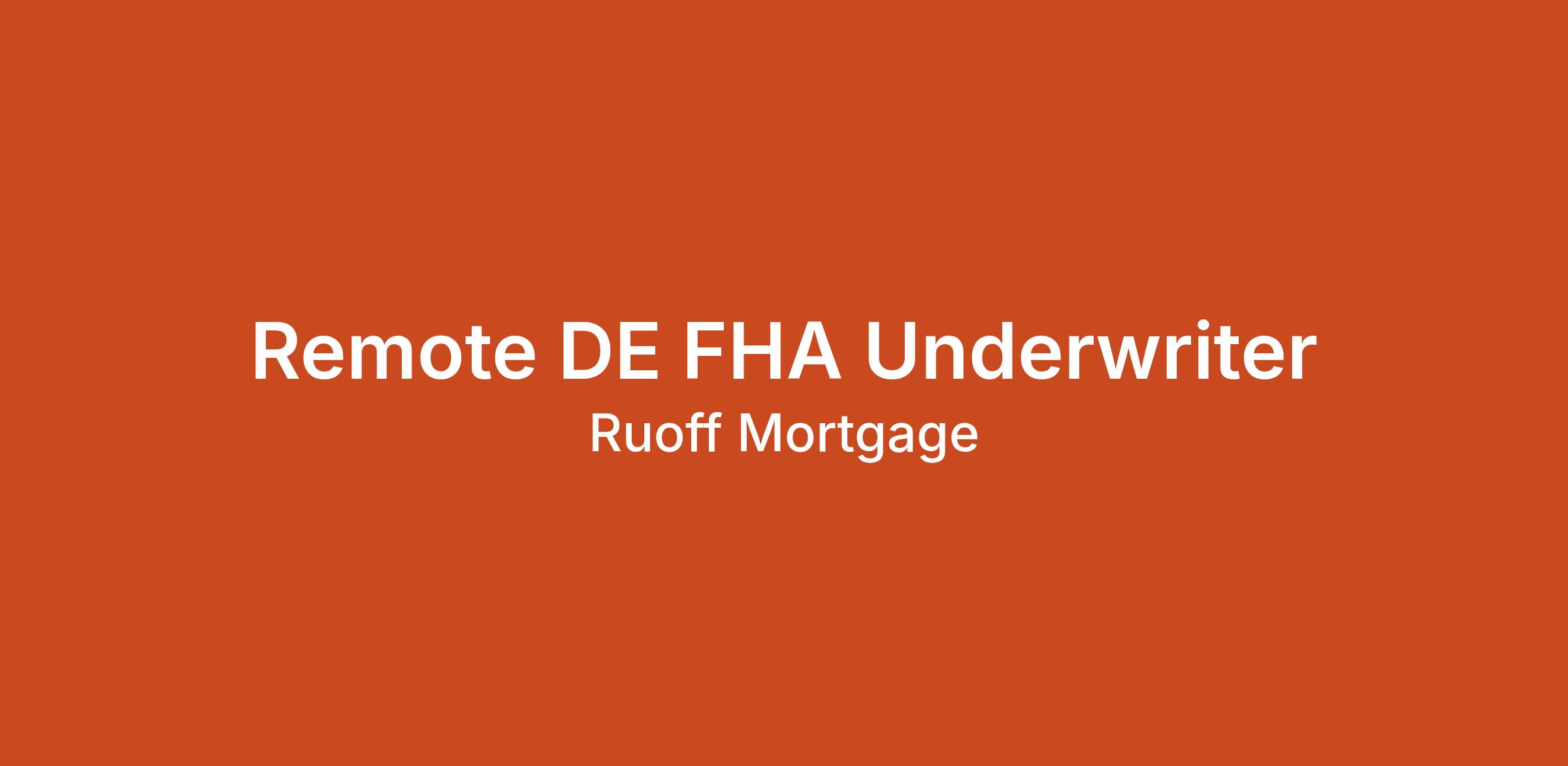 Ruoff Mortgage is hiring an experienced DE FHA Underwriter to join our remote Credit Underwriting Team. If you’re a detail-oriented professional with at least 3 years of mortgage underwriting experience and a current DE certification, we want to hear from you! You’ll be responsible for reviewing both government and conventional mortgage loan applications to ensure compliance, creditworthiness, and investor eligibility. This is a key role in supporting fast, accurate closings.