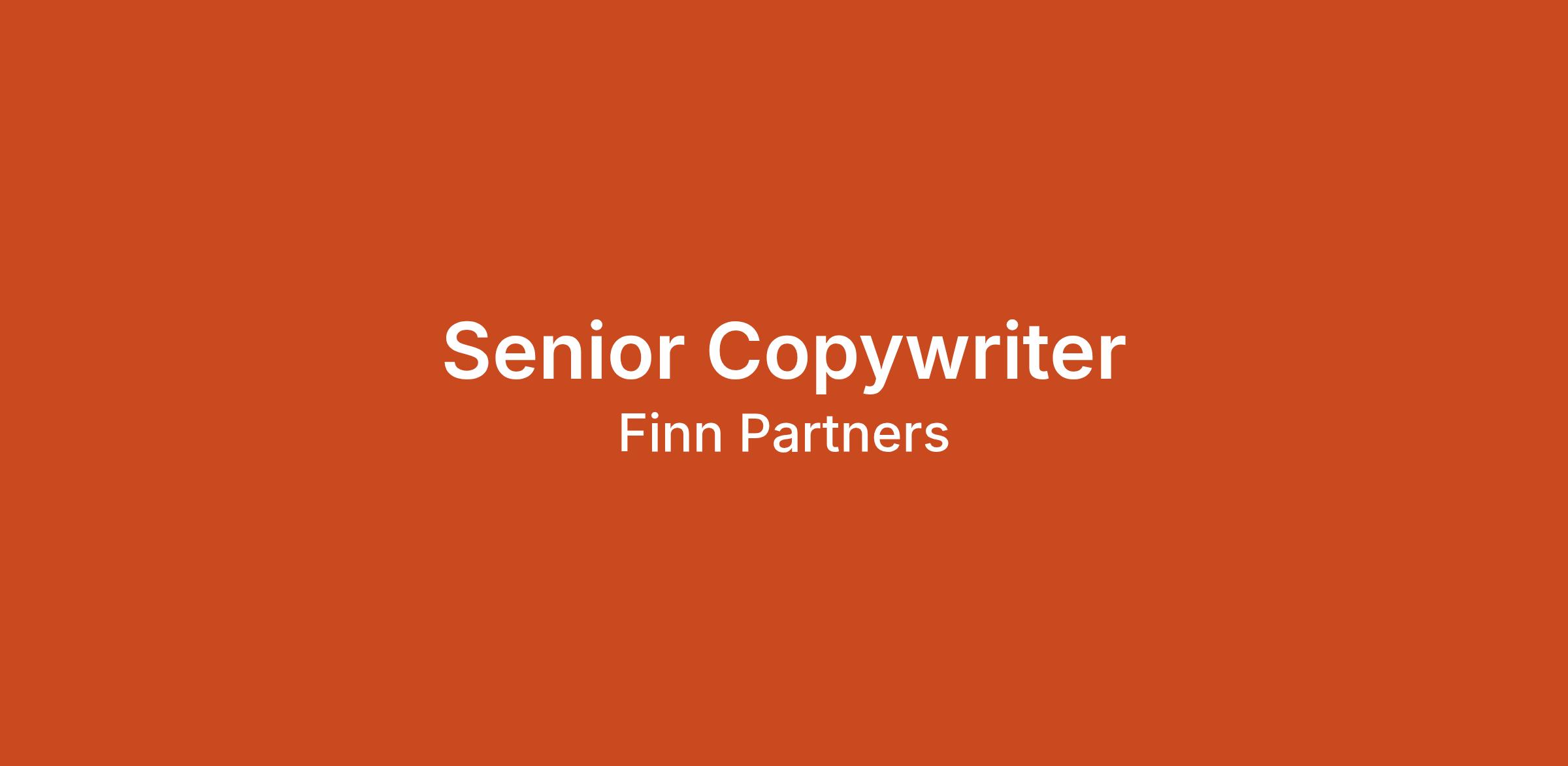 Senior Copywriter FINN Partners is looking for a senior copywriter who can turn ideas into work that connects with people. It’s not all about writing. It’s about distilling sharp, clear concepts that cut through, get noticed, and challenge the status quo. It’s about shaping campaigns from the inside out and elevating every touchpoint along the way. The right person for this job is going to be able to spot opportunities others miss, take ownership of them, and make the work (and the people around it) better.